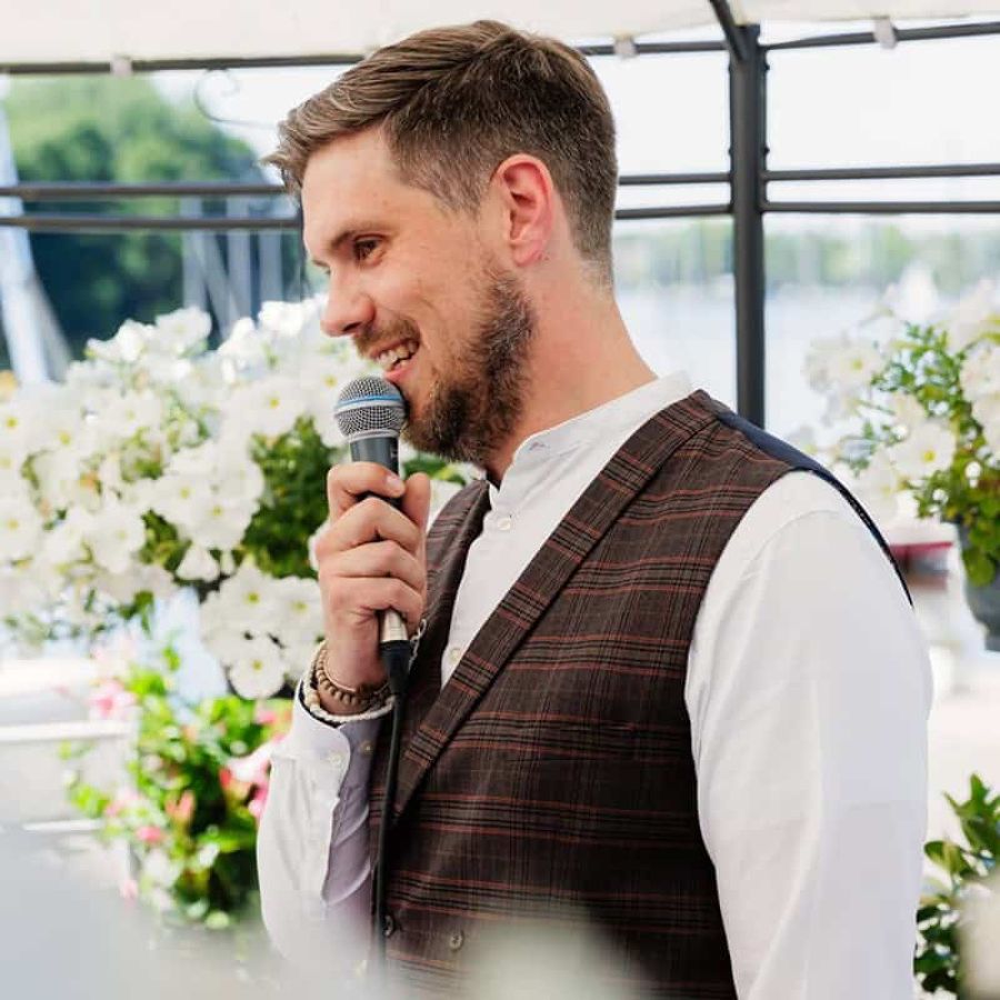 Man sagt ja, man heiratet nur einmal im Leben. Na gut, vielleicht auch zweimal, oder dreimal – wer zählt schon? Egal! Aber eins steht fest: An eurem Hochzeitstag wollt ihr einen Redner, der perfekt zu euch passt und den Tag noch unvergesslicher macht. Und genau das verkörpert eine Freie Trauung! Der Rahmen ist so individuell wie mein Wortwitz und trotzdem steckt er voller Emotionen, die sogar die härtesten zu Tränen rühren. Ich begleite euch auf diesem einzigartigen Weg mit meiner natürlichen Art. Eure Geschichte liegt mir dabei besonders am Herzen, denn ich bin ein absoluter Geschichtenliebhaber. Mit meinem Wortwitz, Charme und einer extra Portion Emotionen bleibt am Ende kein Auge trocken. Zusammen machen wir euren Hochzeitstag zu einem unvergesslichen Fest voller Lachen und Liebe. Ich freue mich auf euch!