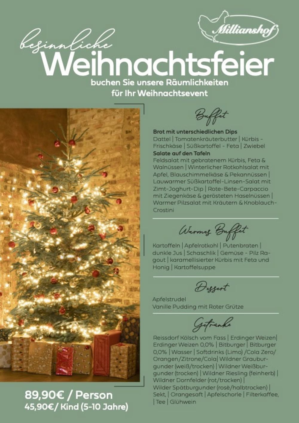 Weihnachtsfeiern für Firmen und Gruppen